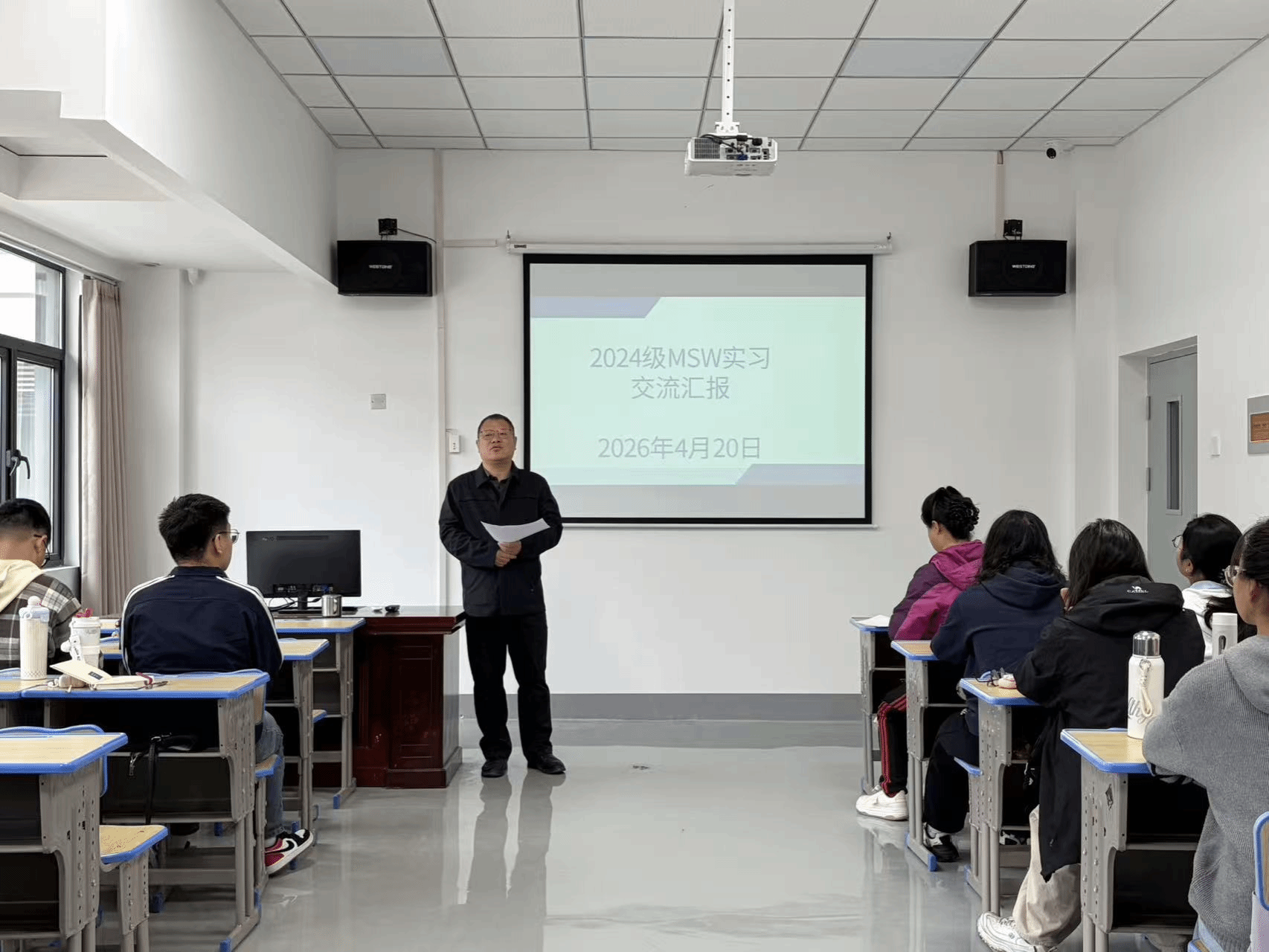 在汇报中,有同学谈到在社区开展老年人需求调研时,如何运用沟通技巧获取信任;也有同学分享了在儿童保护个案中,面对伦理困境时的思考与抉择;还有同学讲述了在精神卫生机构实习时,对服务对象去污名化的切身体会。每一个故事背后,都是理论与实践碰撞的真实记录。同学们纷纷表示,专业实习帮助自己真正将课堂所学的社会工作理论、方法与技巧运用到真实场景中,提升了需求评估、资源整合、危机干预等多方面实务能力,也增强了对社工职业的认同感与责任感。